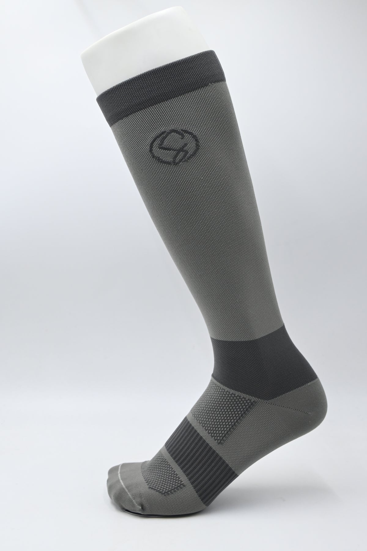 Gray compression sock on a white background